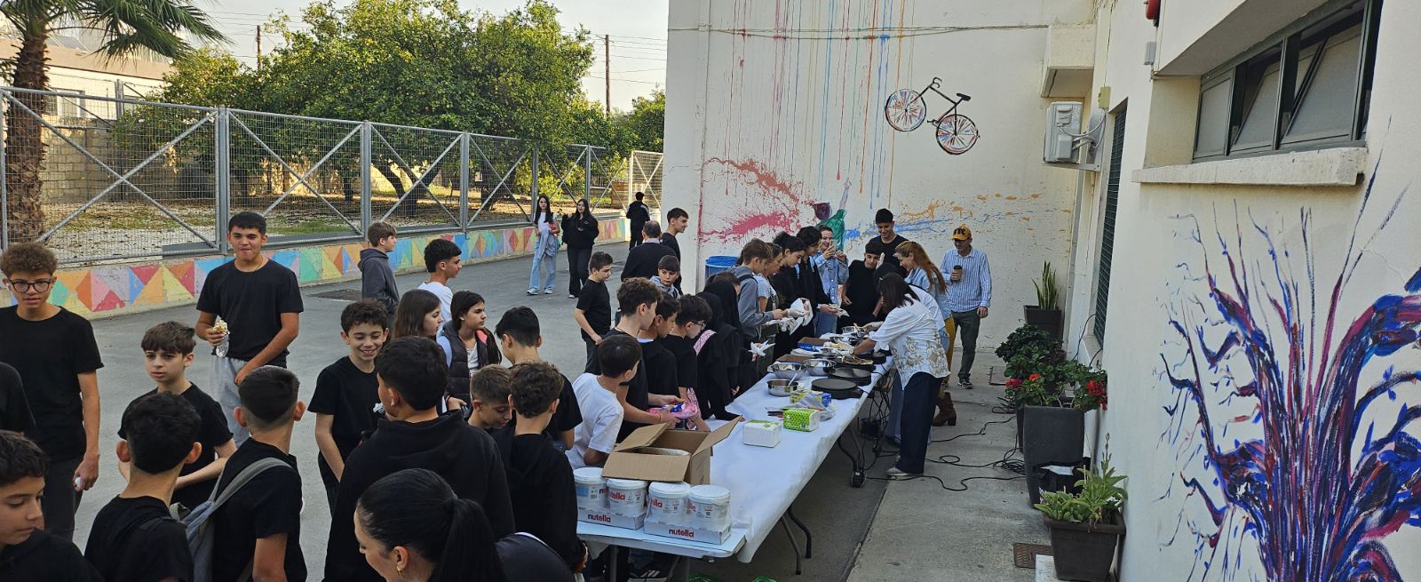 Στις 21 Νοεμβρίου, η Επιτροπή Μαθητικής Πρόνοιας, Εθελοντισμού και Κοινωνικής Προσφοράς, στο πλαίσιο των εορτασμών για τα 75 χρόνια προσφοράς του Ερυθρού Σταυρού στην Κύπρο, οργάνωσε ποικίλες δράσεις. Αρχικά, μαθητές και μαθήτριες του σχολείου μας φωτογραφήθηκαν στο άτριο, σχηματίζοντας τον αριθμό 75. Επιπλέον, πωλήθηκαν κρέπες στους μαθητές και τις μαθήτριες. Στόχος όλων των δράσεων ήταν η ενίσχυση του ταμείου της Μαθητικής Πρόνοιας.