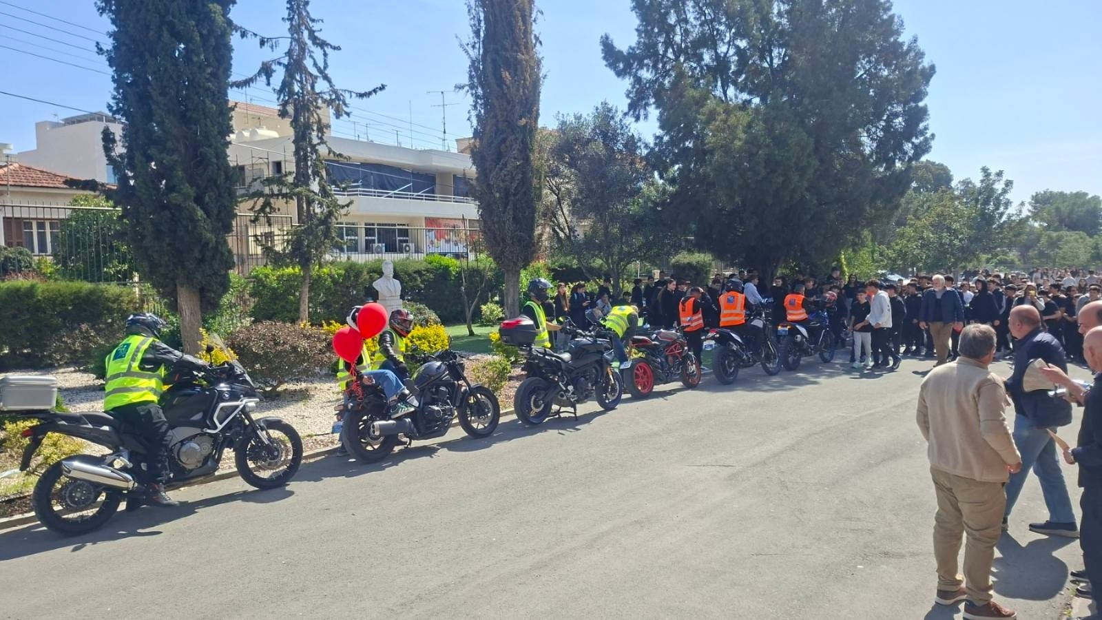 Οι μαθητές και οι μαθήτριές μας παρακολούθησαν με ενδιαφέρον την προσέλευση των μοτοσικλετιστών και άκουσαν το μήνυμα που μετέφεραν σχετικά με τη σημασία της στήριξης που οφείλουμε όλοι να δείχνουμε προς τα παιδιά που παλεύουν με τον καρκίνο και άλλες σοβαρές παθήσεις.